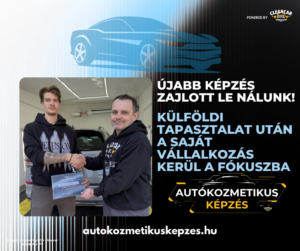 Autókozmetikai oktatás – amikor a külföldi tapasztalat után a saját vállalkozás kerül a fókuszba Újabb sikeres autókozmetikai oktatás zajlott le március 2-án, ahol Aurél vett